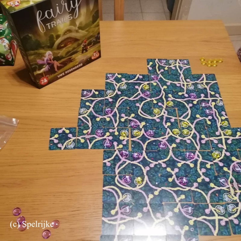Het leven in het sprookjesbos is niet makkelijk. Elven en gnomen hebben allebei hun eigen netwerk van verborgen paden. Ze willen niet gestoord worden en kunnen alleen naar hun huizen terugkeren zodra deze beschermd zijn tegen buitenstaanders. Vind jij je weg door het sprookjesbos of raak je verdwaald?In Fairy Trails ben je een elf (roze) of een gnoom (geel). Je speelt kaarten om je netwerk uit te breiden. Zodra je een pad hebt voltooid, mag je een beschermsteen in je eigen spelerskleur plaatsen op je eigen huizen langs dit pad. De speler die als eerste al zijn beschermstenen op het speelbord kan plaatsen, wint het spel.